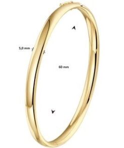 14k Geelgouden bangle uitgevoerd met een scharnier. De bangle heeft een breedte van 5mm en een binnendiameter van 60mm.