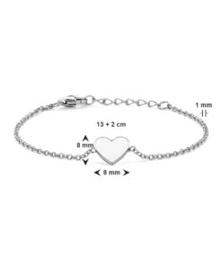 Gerhodineerd 925 zilveren armband uitgevoerd met een hart en wit emaille. De armband heeft een draaglengte van 13cm met 2cm extensie. Uitgevoerd met karabijn sluiting. De schakelbreedte is 1mm.