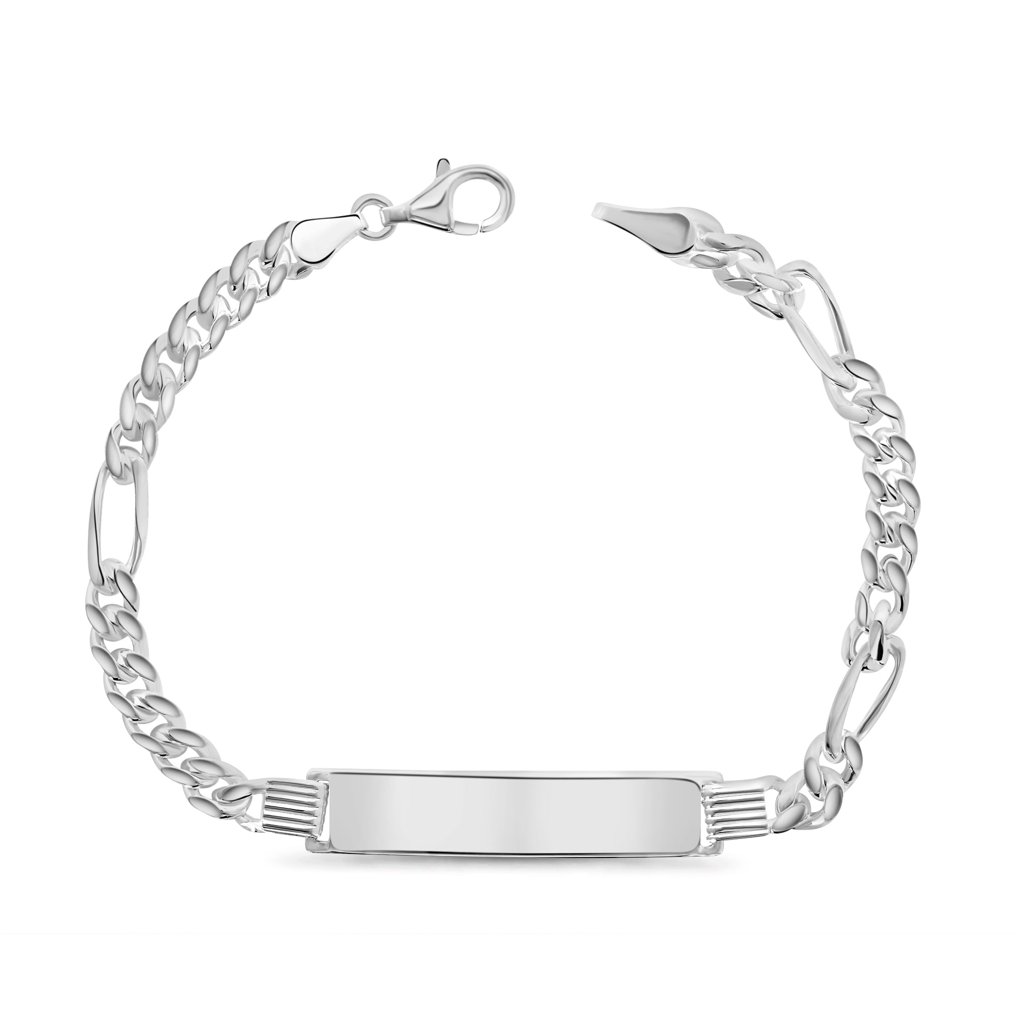 925 zilveren graveerarmband uitgevoerd met een graveerplaat. De armband heeft een draaglengtes van 21cm. De schakelbreedte is 3 mm. De plaat heeft een Breedte van 7 mm. Uitgevoerd met karabijn sluiting. De dikte van de plaat is 0.8 mm.