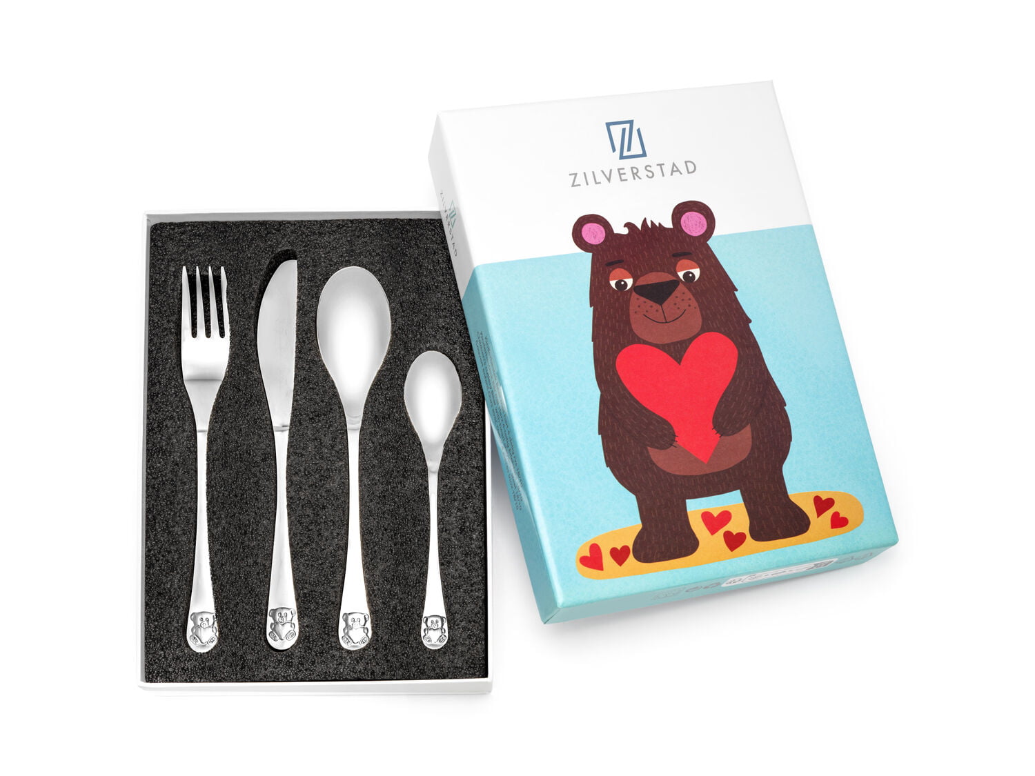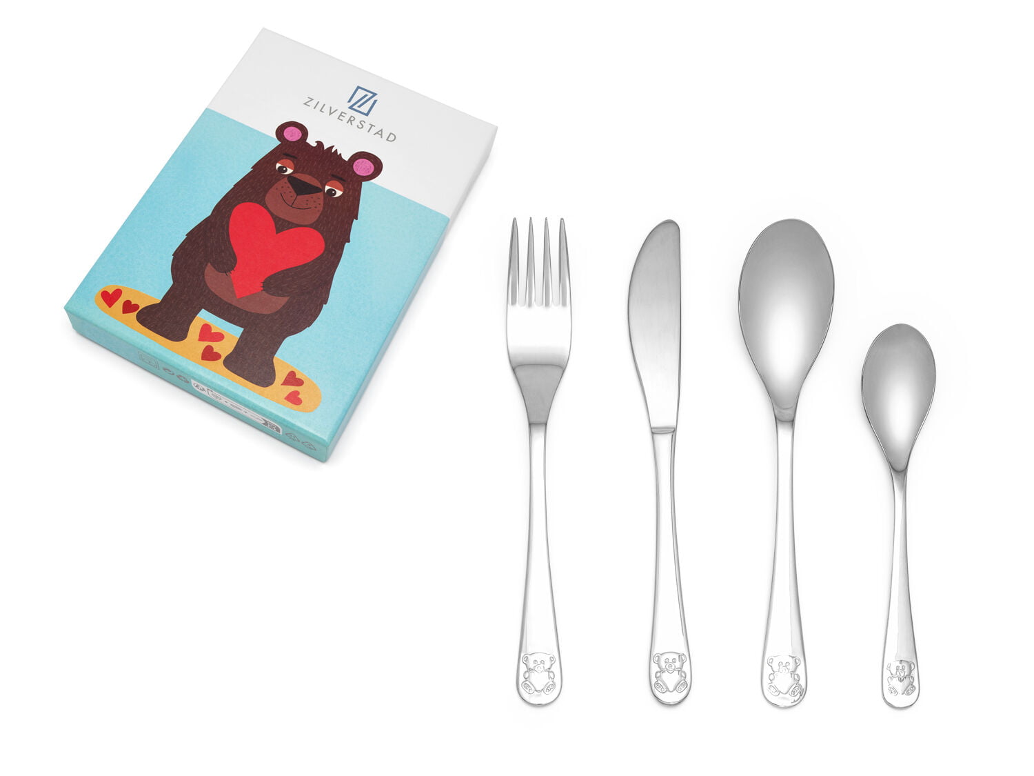 Juwelier Emo – Kindercouvert Beer met hart, 4-delig, RVS