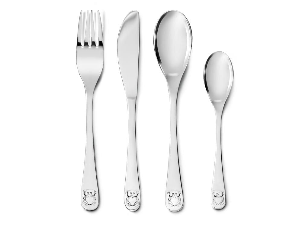 4-delig kindercouvert met een beer met hart in reliëf. Omdat het bestek is vervaardigd uit 18/10 RVS kan het in de vaatwasser. De bestekonderdelen kunnen worden gegraveerd. Maak de serie compleet met de spaarpot, tandendoos en hanger Beer met Hart!