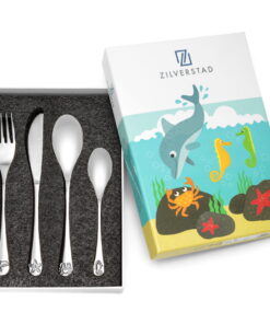 Maak kennis met de dieren die in de zee leven met dit leuke kinderbestek. Op de bestekdelen zien we een dolfijn, een zeepaardje een krab en een zeester. Het bestek is uitgevoerd in hoogwaardig 18/10 RVS dat vaatwasmachinebestendig is en wordt geleverd in een kleurrijke geschenkverpakking.