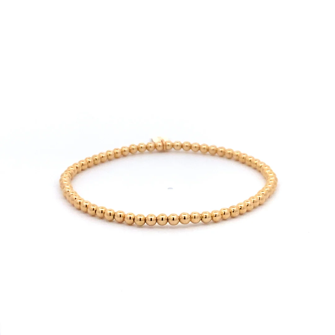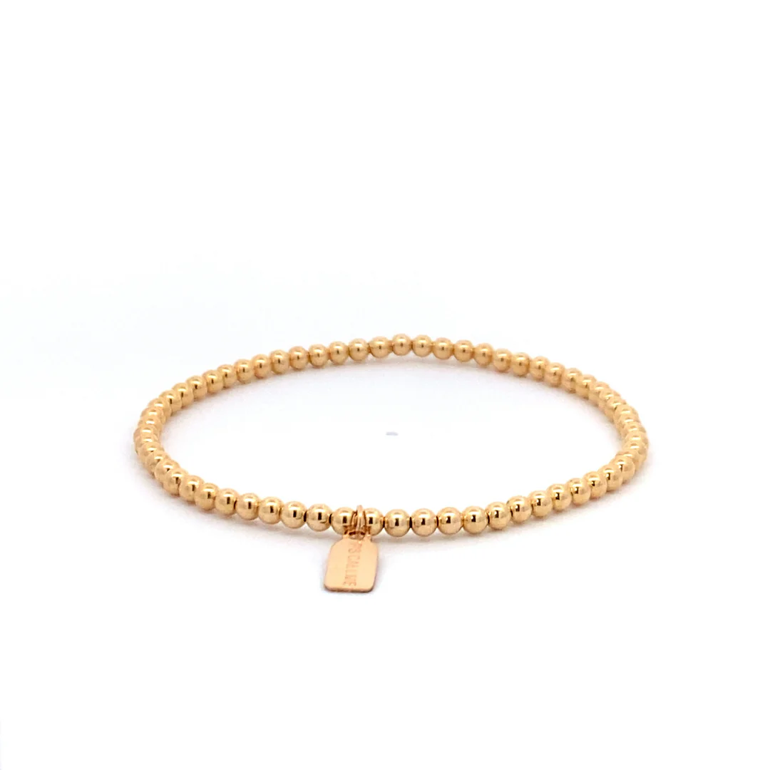 Elastische armband met goudkleurige balletjes.