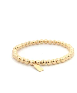 Elastische armband met goudkleurige balletjes.